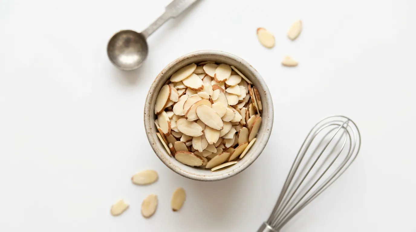 Las almendras laminadas se tuestan muy rápido — vigílalas como un halcón cuando las pongas en el horno (180°C, 5-7 minutos) porque pasan de doradas a quemadas en un parpadeo. Las puedes encontrar con piel (más rústicas, más sabor) o blanqueadas (más elegantes, sabor más suave). Guárdalas en el congelador si no las usas pronto — los aceites se enrancian.