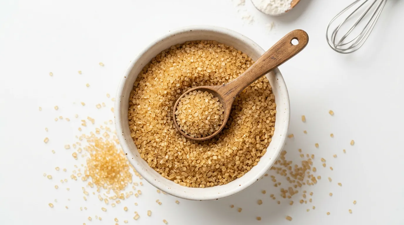 Sus cristales grandes y dorados no solo son bonitos — son funcionales. No se disuelven tan rápido como el azúcar blanco, lo que los convierte en el secreto de las tapas crujientes de muffins y la costra perfecta de una crème brûlée. Si tu receta pide 'espolvorear con azúcar', el demerara es la respuesta correcta.