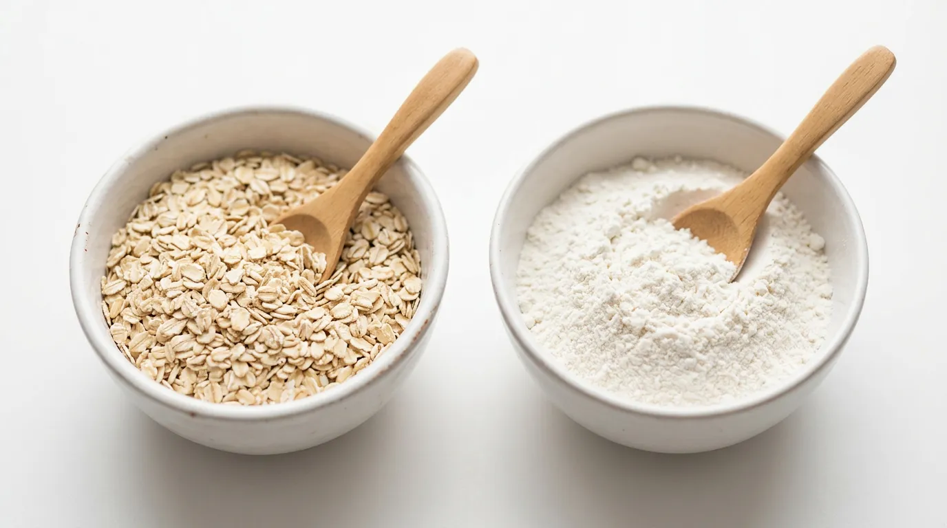 La textura será radicalmente diferente. Los copos de avena aportan una masticabilidad rústica y reconfortante; la harina de arroz produce una miga fina, suave y ligeramente arenosa. Si la textura de avena era el atractivo principal de la receta, esta sustitución no la replicará.