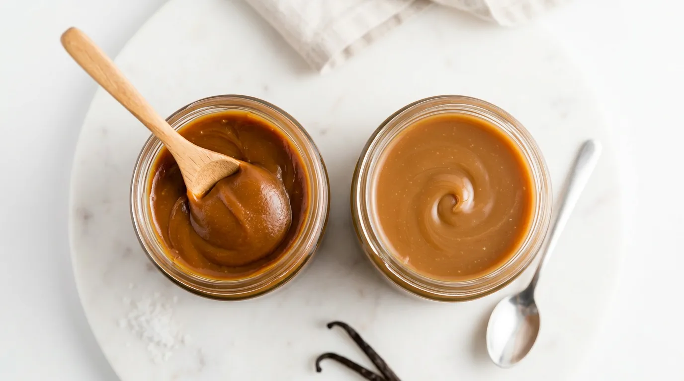 Las cremas de caramelo suelen ser más líquidas que el dulce de leche. Pueden necesitar reducción a fuego lento para alcanzar una consistencia similar. Algunas marcas comerciales son más espesas y funcionan mejor como sustituto directo.