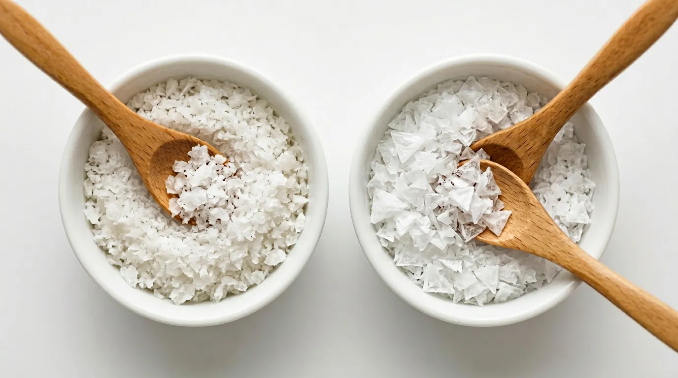 Como sal de acabado, ninguna de las dos afecta la estructura del horneado. Si por algún motivo se usan dentro de la masa (no recomendado), ambas se comportan igual.