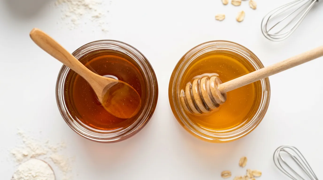 La textura será prácticamente idéntica — ambos son siropes espesos que retienen humedad y mantienen los horneados suaves y jugosos. La miel tiende a cristalizar más fácilmente que el golden syrup con el tiempo, así que las galletas o barritas pueden desarrollar una textura ligeramente más firme tras unos días de almacenamiento.