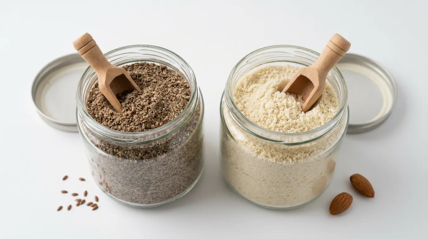 La harina de almendra aporta un sabor dulce y delicado que es completamente diferente al perfil terroso y amargo del lino. El resultado será más elegante y convencional. En recetas donde el lino se usa por sabor (panes rústicos, crackers), la almendra cambia significativamente el perfil. En recetas donde el lino es un ingrediente funcional (por humedad o nutrición), la transición es más suave.