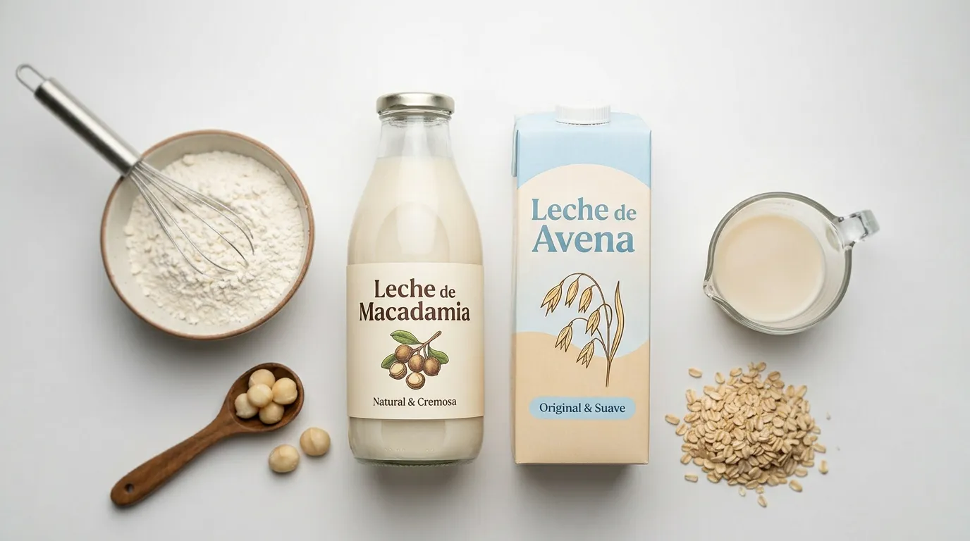 La leche de avena contiene almidón soluble que puede aportar ligeramente más estructura a las masas que la leche de macadamia. Esto es generalmente positivo en horneados. Importante: la leche de avena contiene gluten (a menos que se use avena certificada sin gluten), por lo que no es apta para recetas que necesiten ser celíacas.