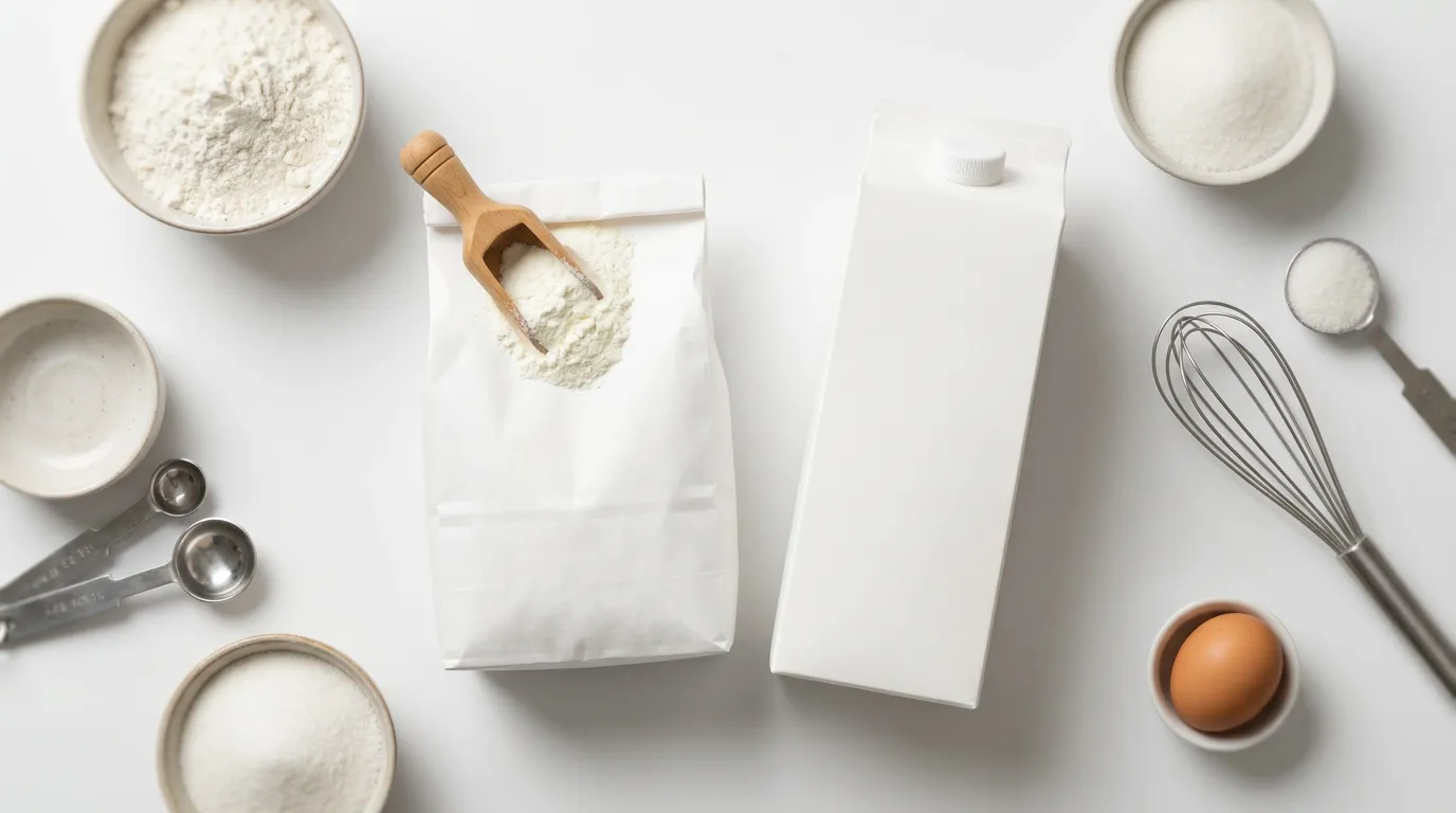 La leche en polvo concentra proteínas y sólidos lácteos que refuerzan la estructura del gluten y mejoran el dorado por reacción de Maillard. Al sustituir por leche líquida, obtienes los mismos componentes pero mucho más diluidos. El pan o bizcocho resultante puede tener una miga ligeramente menos firme y un dorado menos intenso. Para compensar parcialmente, puedes añadir una cucharadita extra de harina por cada 30g de leche en polvo sustituida.