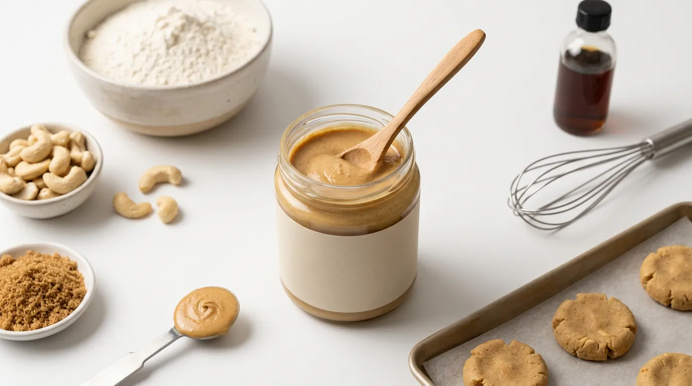 La mantequilla de anacardo es la más suave y cremosa de todas las mantequillas de frutos secos, lo que la hace ideal para cremas, rellenos y postres donde buscas una textura sedosa sin sabor dominante. Cómprala sin sal ni azúcar añadidos para repostería. Si la haces en casa, procesa los anacardos al menos 10 minutos en un robot potente — la paciencia es la diferencia entre una pasta granulosa y una crema de seda.