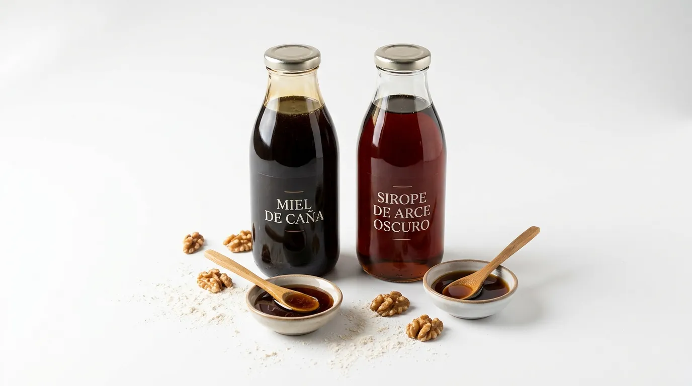 El sirope de arce oscuro aporta dulzor y complejidad, pero con un perfil completamente diferente: notas de madera, vainilla y caramelo amaderado en lugar del caramelo tostado y el regaliz de la miel de caña. El resultado no será auténtico en recetas tradicionales andaluzas, pero puede ser delicioso por mérito propio. Para torrijas y pestiños, la diferencia es evidente; en bizcochos y masas integradas, la sustitución pasa más desapercibida.