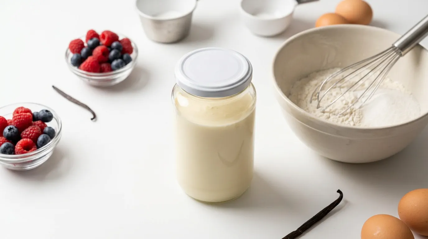 🥛 LácteoLa nata líquida tiene un 35-38% de grasa y aporta cremosidad, sedosidad en boca y capacidad de retener aire al montarla. Transforma chocolate fundido en ganache, da ternura a masas de bizcocho y, montada con azúcar, acompaña cualquier postre. Su grasa lubrica la miga, su agua contribuye a la estructura y sus proteínas ayudan a dorar. Es un ingrediente central de la repostería clásica.