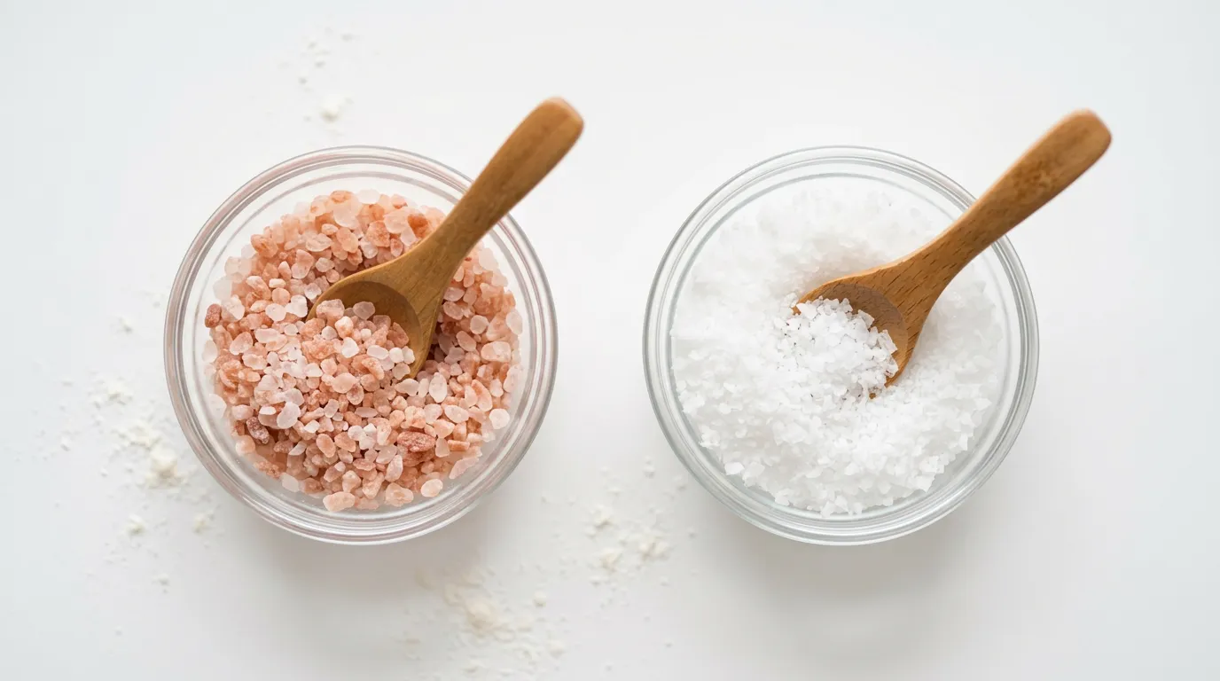 La sal kosher pesa menos por volumen que la sal del Himalaya debido a la forma de sus cristales. Por eso se necesita más volumen (1.5 tsp por cada 1 tsp) para igualar la salinidad. En peso, el ratio es 1:1. La función estructural es idéntica.