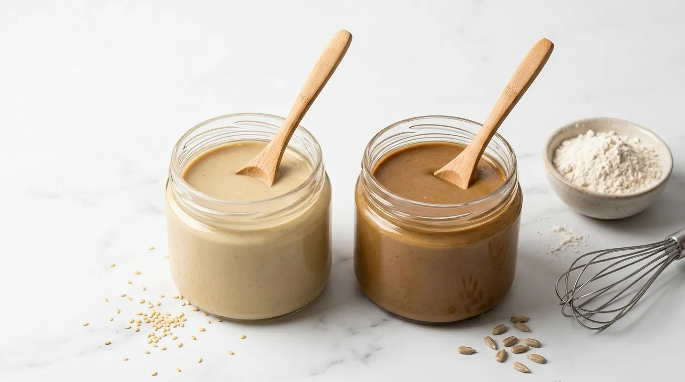 La textura es muy similar al tahini: fluida, untuosa y ligeramente granulosa. En horneados, las galletas y brownies mantendrán una textura equivalente. La mantequilla de girasol tiende a ser un poco más firme que el tahini, lo que puede hacer la masa ligeramente más fácil de manejar.